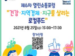 행정안전부와 농림축산식품부는 8월 25일 오후 3시, “건강·지역경제·지구를 살리는 로컬푸드”를 주제로 2021년 제6차「광화문1번가 열린소통포럼」을 개최한다고 밝혔다.