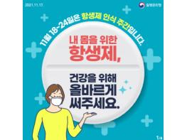 WHO는 매년 11월 18~24일은 ‘세계 항생제 내성 인식 주간(World Antibiotic Awareness Week)’으로 지정하여, 항생제 내성에 대한 인식을 개선하고 항생제의 적절한 사용을 위해 국가별 캠페인을 실시하도록 권고하고 있습니다.