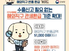 해외 직구 반품 금액 $1,000 이하에서 원화 200만 원까지 확대 시행합니다.