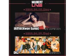 완성형 솔로로 돌아온 ‘권은비’와 역주행 돌풍을 일으키고 있는 그룹 ‘DKZ(디케이지)’가 글로벌 케이팝 플랫폼 뮤빗(Mubeat)의 뮤빗라이브(Mubeat Live)에 출연한다.