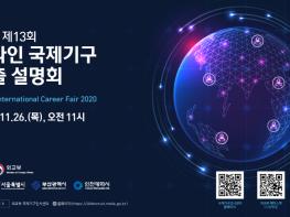 외교부는 국제기구 진출에 관심 있는 우리 국민들에게 현장감 있고 실질적인 정보를 제공하기 위해 주요 국제기구 인사담당관을 초청, 11.26일 ‘제13회 국제기구 진출 설명회’를 온라인 개최한다.