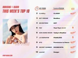 해당 차트에서는 최근 신곡 ‘러브 쉿!'을 발매하고 활발한 활동을 펼치고 있는 조유리가 1위를 차지했다.