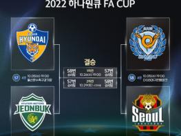 2022 하나원큐 FA컵 준결승 대진이 확정됐다. 울산현대와 전북현대가 '현대가더비'를 펼친다. 대구FC는 FC서울을 홈으로 불러들여 2년 연속 결승 진출을 노린다.