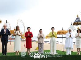 김건희 여사는 11월 15일 오전(현지시간) 인도네시아 발리에서 전통문화를 체험하는 G20 정상회의 배우자 프로그램에 참여했다. G20 정상회의 의장국인 인도네시아의 조코 위도도 대통령 부인 이리아나 여사가 주관한 행사에는 중국, 일본, 튀르키예, 스페인, EU 등의 정상 배우자들이 참석했다.