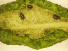 사과혹진딧물은 꽃이나 잎이 되는 눈 주변에서 알로 겨울을 나는 해충으로, 잎의 기형을 일으키고 심하면 즙액을 빨아 잎을 일찍 떨어뜨린다. 또한, 진딧물의 배설물은 잎과 열매에 그을음 증상을 일으킨다.