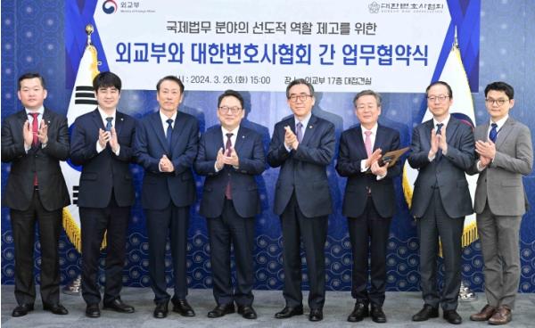 외교부는 3월 26일 대한변호사협회와 업무협약(MOU)을 체결했다.