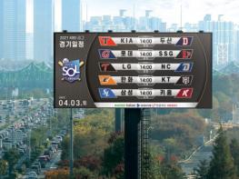 KBO(총재 정지택)는 내일(3일) 막을 올리는 2021 신한은행 SOL KBO 리그의 실시간 경기 정보를 올림픽대로 전광판을 통해 시즌 개막부터 종료 시까지 제공한다.