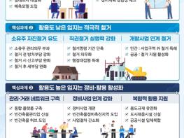 활용도가 높은 빈 건축물의 유휴자산 활용가치 제고를 위해 ‘빈집愛’ 플랫폼 확대 – 빈 건축물 관리업 도입 - 빈 건축물 허브 설립을 통한 관리·거래 네트워크를 구축한다.