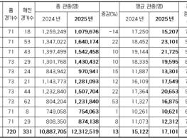 최종적으로 2025시즌은 지난 시즌 보다 약 13% 증가한 1,231만 2,519명의 관중이 입장하며 평균 관중 1만 7,101명을 기록했다. 전체 경기 수의 약 46%인 331경기가 매진됐고, 좌석 점유율 또한 82.9%를 기록했다.