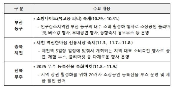 이를 위해 지역별 특성과 수요를 반영한 맞춤형 행사와 연속(릴레이) 캠페인을 전국적으로 추진해, 소비 심리를 진작하고 내수 회복의 흐름을 강화해 나갈 방침이다.