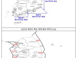 이는 국립수산과학원이 전남 남해 앞바다, 부산·경남 남해 앞바다, 울산·경북 동해 앞바다에 발표한 해파리 특보를 10월 28일 16시부로 전면 해제한 것에 따른 조치이다.
