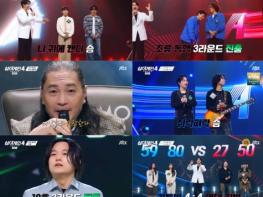 록 스피릿 폭발한 ‘록 대전’은 분위기를 달궜다. 1라운드에서 개성 넘치는 보컬로 깊은 인상을 준 69호와 77호, 10호와 42호가 1990년대 명곡들로 겨룬 것. ‘쥐락펴락’ 69호, 77호는 민해경의 ‘보고 싶은 얼굴’을 두 사람만의 록 스타일로 해석했다. 김이나는 “관능적이면서도 남성적이면서도 매혹적”이라고 무대를 평했다.