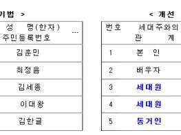 먼저, 재혼가정 등에서의 필요 이상의 개인정보 표기로 인한 사생활 침해를 방지하고자, 필요 최소한의 개인정보만을 나타내도록 주민등록표 등·초본 표기 양식을 개선했다.