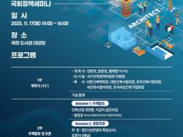 대통령 소속 국가건축정책위원회는 11월 17일 오후 국회도서관 (대강당)에서 국회 국토교통위원회 소속 천준호, 한준호, 염태영 의원과 “건축산업 진흥을 위한 세미나”를 공동 개최한다.