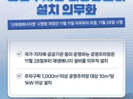 - 국가·지자체·공공기관 등이 운영하는 공영주차장은 11월 28일부터 재생에너지 설비를 의무적 설치