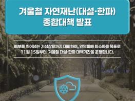 예보를 뛰어넘는 기상상황까지 대비하여, 인명피해 최소화를 목표로 11월 15일부터 겨울철 대설·한파대책기간을 운영합니다.