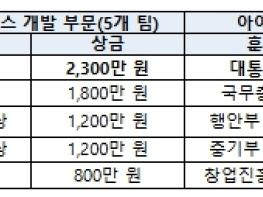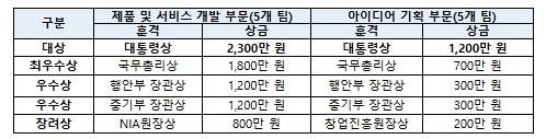 한편, 지난해에는 수출입 화물 실시간 추적 서비스 ‘쉬핑노트(Shipping Note)’를 개발한 관세청의 ‘지비티에스’팀과 산림양묘 병해충 예측 방제 정보제공 서비스인 ’시들링(seedling)’을 개발한 산림청의 ‘애프터레인’팀이 각각 대통령상을 수상했다.