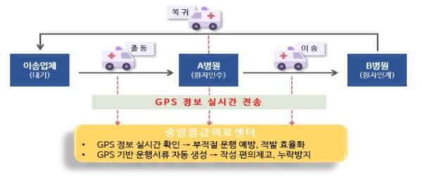 이에 보건복지부는 실시간 GPS 정보를 기반으로 구급차 운행을 관리할 계획이다. 구급차가 운행할 때 GPS 정보를 중앙응급의료센터에 실시간으로 전송하도록 의무화하고, 이를 상시 확인할 수 있는 시스템을 구축한다.
