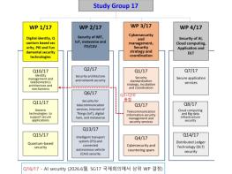 한편, 정보보호연구반이 인공지능 자체 보안, 생성형 AI 모델, 딥페이크 탐지 및 파인튜닝 보안 등 전반적인 인공지능 보안 기술을 전담할 연구과제(Question 16)의 잠정 신설에 합의함에 따라, 우리나라는 에이전틱 및 피지컬 AI 보안 등 신흥 분야까지 연구 범위를 확대하여 새로운 리더십 확보를 목표로 적극 참여할 예정이다. 해당 연구과제는 2026년 1월 표준화자문그룹(TSAG) 국제회의에서 심의될 예정이고, 2026년 6월경 차기 SG17 국제회의에서 최종 승인될 예정이다.