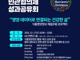 이번 포럼에서는 영양성분 데이터 보완을 위한 소그룹 활동인 ‘채움 프로젝트(Fill Project)’ 운영 등 ‘25년 주요 성과를 공유하고 수요 기반의 식품영양 DB 고도화, 활용성 강화를 위한 민관 협력 방안 등을 논의한다.