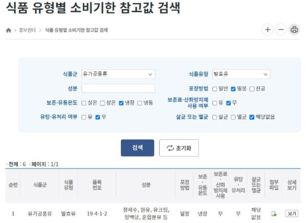 영업자는 식약처가 제공하는 ‘소비기한 설정보고서’와 ‘소비기한 참고값 검색 서비스’에서 식품유형, 포장방법, 보존·유통온도 등이 자사 제품과 가장 유사한 품목의 소비기한 참고값을 쉽고 편리하게 확인할 수 있다.