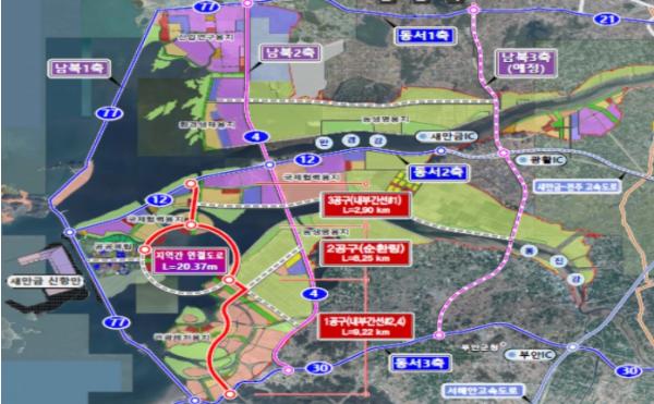 한편, 지역간 연결도로는 주변 경관과 새만금의 정체성을 반영한 특화설계・디자인으로 새만금의 새로운 랜드마크 도로로 조성될 예정이다.