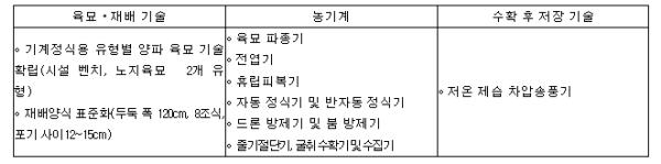 한편, 농촌진흥청은 농촌 인구 감소와 고령화로 일손 구하기가 힘든 현장의 어려움을 해결하고자 기계 개발 연구에 재배 기술, 저장 등 다른 기술을 연계한 밭작물 전 과정 기계화를 추진하고 있다.