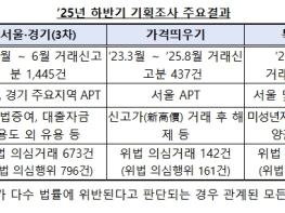 이번 기획조사는▴서울·경기 주택 이상거래(’25.5월~6월 거래신고분),▴부동산 실거래가 띄우기(’23.3월~’25.8월 거래신고분), ▴특이동향 등(’25.1월~7월 거래신고분) 3가지 분야에 대해 실시됐다.
