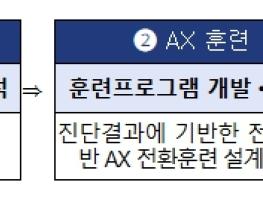 ② 2단계(훈련): 대표이사(CEO) 대상의 인사이트 교육(일반AX)과 실무자 중심의 문제해결형 교육(전문AX)을 병행한다. 실무 훈련은 최소 18시간 이상의 실습 위주로 구성된다.