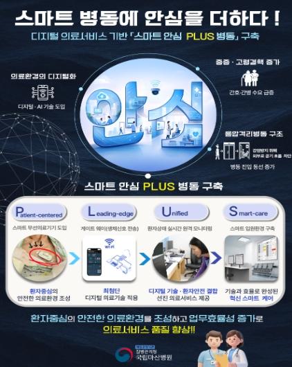 김기남 차장은 국립마산병원의 주요 업무 현황을 보고 받고 결핵 병동 및 진단검사의학과 등 주요 시설을 점검했다. 특히, 2024년 12월부터 운영하고 있는 디지털 의료서비스 기반 「스마트 안심 PLUS 병동」을 방문하여 환자 중심의 안전한 의료환경 조성을 위해 적극적으로 노력해달라고 당부했다.
