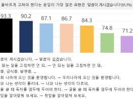 조사 결과 총 30개의 어려운 어휘, 잘못된 표현에 대해 ‘바꿔야 한다고 생각한다’라고 응답한 비율은 평균 61.8%로, 쉽고 바른 말을 사용하자는 응답이 전체적으로 많았다. 특히 13개 항목은 70% 이상, 그중 5개 항목은 80% 이상의 응답자가 바꾸어 써야 한다고 답하는 등 개선 요구가 높게 나타났다.