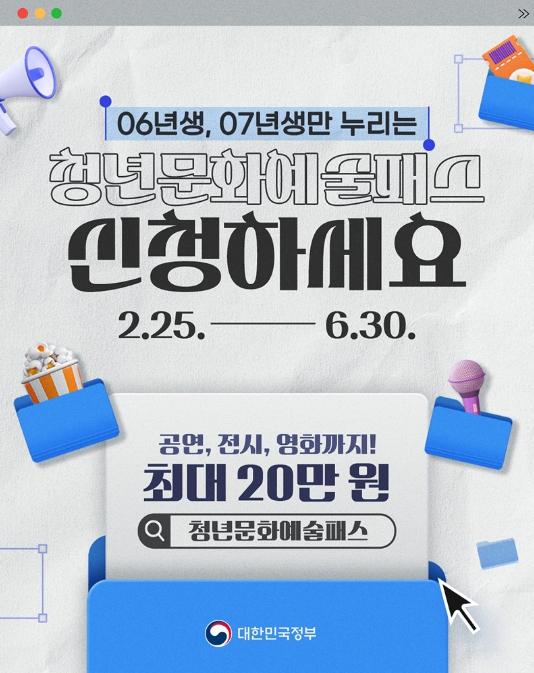 06년생, 07년생만 누리는 '청년문화예술패스' 신청하세요.