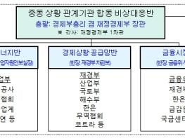 정부는 경제부총리를 중심으로 중동 상황 관련 실물경제, 에너지, 금융시장, 중동 동향 등에 대한 관계기관 합동 비상대응반을 가동하고 중동 현지 상황과 국내외 금융시장, 에너지·수출·해운·항공·공급망 등 실물경제 영향을 24시간 모니터링해 나갈 계획이다. 아울러, 이상징후 발생 시 준비된 상황별 대응계획(Contingency plan)에 따라 관계기관 간 공조 하에 신속하게 대응해 나갈 계획이다.
