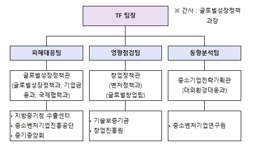 아울러, 중기부는 TF 회의에 참여한 각 기관에 중소기업 피해 최소화를 위해 긴밀한 정보 공유와 협업 체계를 유지하고, 피해·애로 중소기업 발생시 신속한 지원이 이루어질 수 있도록 적극적인 대응을 당부했다.