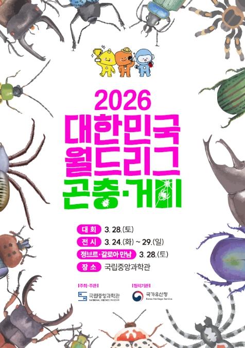 과학기술정보통신부 국립중앙과학관은 3월 24일부터 29일까지'2026 대한민국 세계 연맹전(월드 리그) 곤충·거미' 행사를 개최한다. 이번 행사는 곤충과 거미의 생태적 가치와 매력을 직접 체험할 수 있도록 마련된 참여형 행사로 전시와 경진대회, 체험 교육, 박람회 전시관(부스) 등이 함께 운영된다.