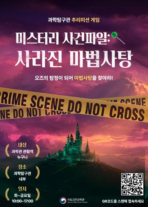 과학기술정보통신부 국립과천과학관은 관람객이 즐길 수 있는 디지털 추리 임무(미션) 프로그램 『수수께끼(미스터리) 사건 파일: 사라진 마법 사탕』을 3월 31일부터 과학탐구관에서 선보인다고 밝혔다.