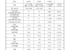 누적 관중은 전년도 대비 36.8% 증가했다. 경기당 평균 관중은 퓨처스리그 구장 경기 편성(이천, 마산 등 8경기) 등의 영향으로 이 부문 역대 1위를 기록했던 지난해(7,661명·42경기) 대비 약 4.2% 감소해 7,337명을 기록했다.