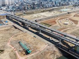 행복청은 올해 초 교량의 기초와 교각 등 하부공사를 성공적으로 완료했다. 현재는 교량의 본체가 되는 상부 구조물 공사가 한창이다. 상반기에는 교량 상부의 뼈대인 ‘거더’를 설치하고, 차량이 다닐 바닥판 설치 공사를 진행한다. 하반기에는 교량 방호벽 설치, 도로 포장, 부대시설 공사를 마무리하여 올해 말까지 주요 구조물 공정을 모두 완료할 계획이다.