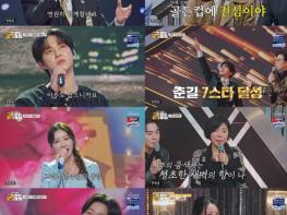 가장 먼저 7번째 황금별을 채운 주인공은 춘길이었다. 이날 춘길은 '골든 스타' 최진희의 명곡 '천상재회'를 선곡, 절정으로 치닫는 감정선과 열창으로 무대를 단숨에 장악했다. 현장에서는 역시나 "결승전 같다"라는 반응이 터져 나올 만큼 긴장감이 극에 달했다.