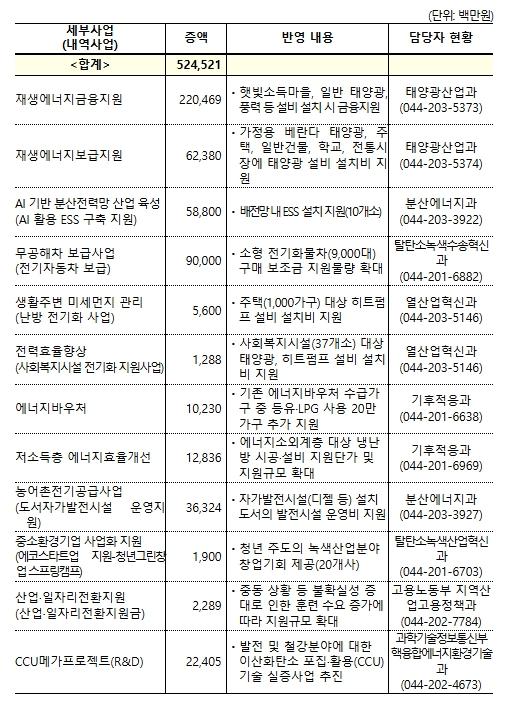 유가 상승과 산업구조 변화에 따른 고용 충격 완화를 위해 ▲산업·일자리 전환 지원에 23억원, 발전 및 철강 분야 탄소중립 핵심기술 확보를 위해 ▲CCU 메가프로젝트(R&D) 사업에 224억원도 편성한다.
