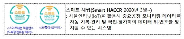 농림축산식품부와 식품의약품안전처는 스마트 해썹 제도를 도축장과 집유장까지 확대 적용할 수 있도록 '식품 및 축산물 안전관리인증기준' 고시를 3월 31일 일부 개정했다고 밝혔다.