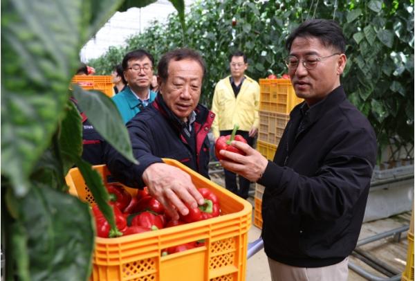 박정훈 농림축산식품부 식량정책실장은 4월 7일 최근 중동 상황에 따른 국제유가 상승과 농자재 가격 상승으로 어려움을 겪고 있는 경기도 고양시 소재 파프리카 시설원예 농가를 방문하여 생육상황과 영농 여건을 직접 점검하고 현장 애로사항을 청취했다.