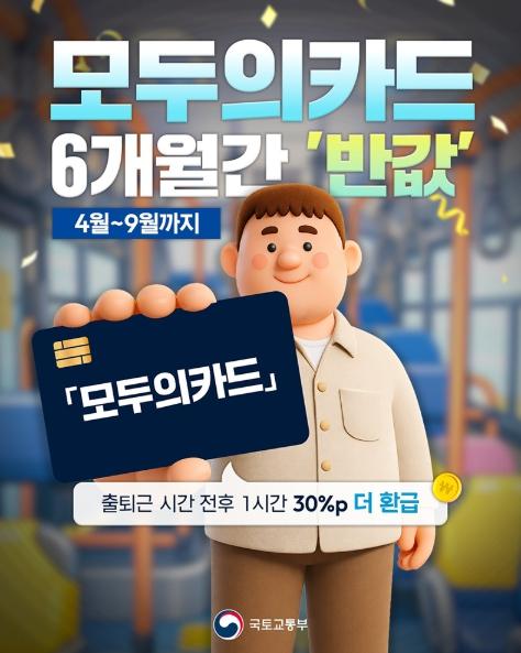 국토교통부, 모두의카드 6개월간 '반값'+ 30% 추가 환급