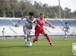 후반 8분에는 국가대표팀 역시 대규모 선수교체를 진행했다. 골키퍼 김정미를 뺀 필드플레이어 전원이 교체됐다. 국가대표팀은 선수교체 이후에도 강한 압박을 이어가며 U-20 대표팀을 밀어붙였다. U-20 대표팀에서는 교체 투입된 강지우가 국가대표팀 수비진의 뒷공간을 노렸다.