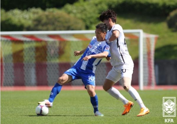 이민우는 흘러나온 세컨볼을 놓치지 않고 슈팅으로 연결하는 집중력을 발휘해 결승골을 터트렸다. 그는 “김포는 작년까지 같이 K3리그에서 경쟁하던 팀이지만 이제 K리그2로 올라갔다. 우리보다 높은 수준의 팀이라는 걸 알고 있기 때문에, 한 발 더 뛴다는 생각으로 경기에 임했다”며 “프로팀을 잡았기 때문에 리그에 돌아가서 더 잘할 수 있다는 자신감을 얻었다”고 말했다.
