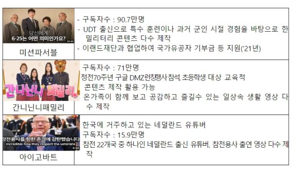 6·25전쟁 정전 70주년의 의미와 기념사업 등을 국민에게 알리는 대국민 소통 활동에 유명 영향력자(인플루언서)와 청년들이 나선다.