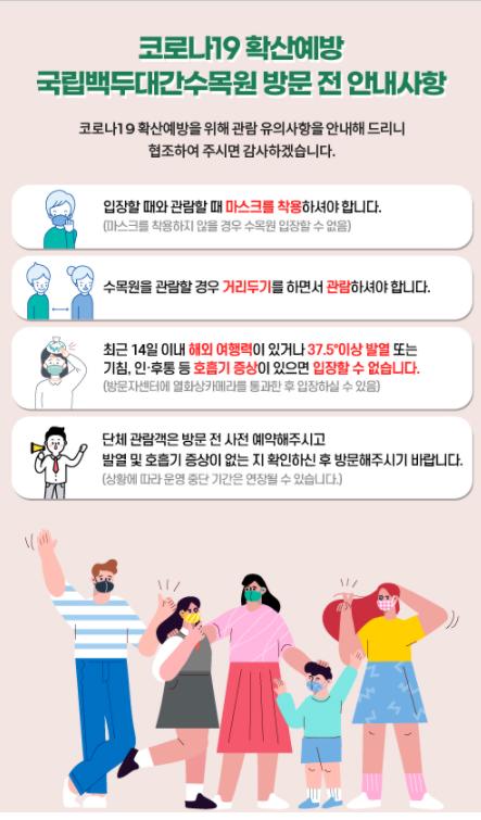 고객서비스실 허재균 실장은 “코로나19로 지친 국민들이 언택트 관광지인 국립백두대간수목원에서 가족 친지와 함께 즐거운 시간을 보내길 바란다.”고 말했다.