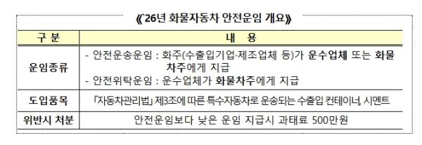이번 의결을 통해 고시될 ‘26년 적용 안전운임의 주요 내용은 다음과 같다.