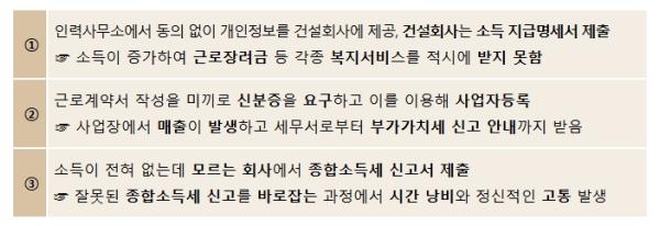 그간 나도 모르는 사이에 근무하지도 않은 회사에서 소득 지급명세서가 제출되는 등 명의도용 피해가 발생하면 생업으로 바쁜 피해자들이 스스로 해결해야 했다.