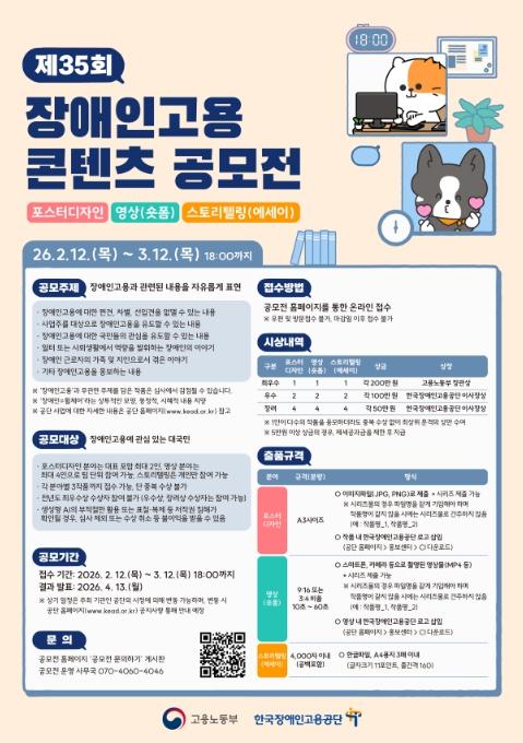 고용노동부와 한국장애인고용공단이 '2026년 제35회 장애인고용 콘텐츠 공모전'을 개최한다.